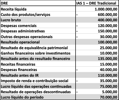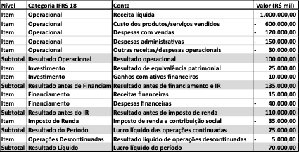 A norma exige a divulgação de subtotais padronizados, como: Resultado operacional; Resultado antes do financiamento e do imposto de renda; Resultado antes do imposto de renda.